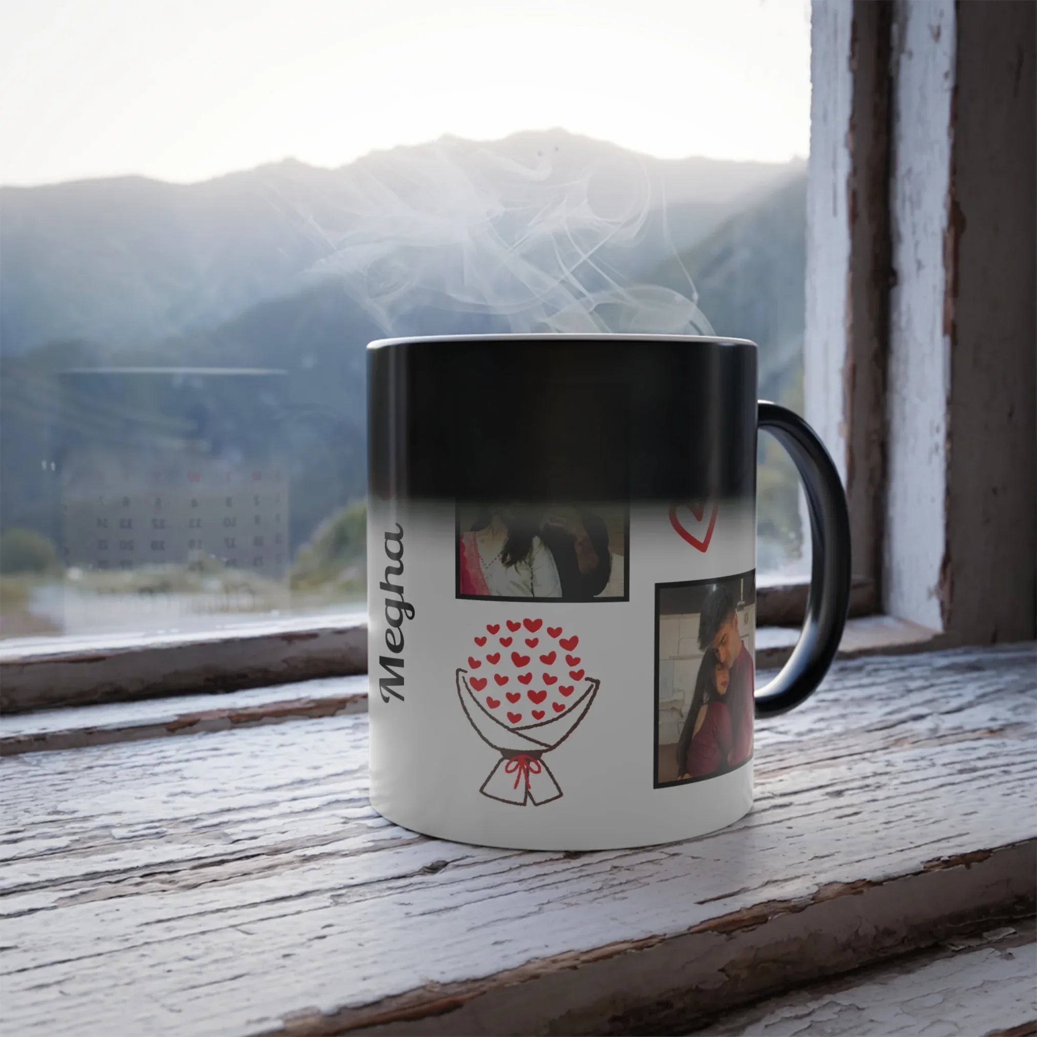 When the mug is cold, it appears in an elegant black color, keeping the printed design hidden. As soon as you pour hot tea, coffee, milk, or hot water, the mug magically changes color and reveals your personalized photo or special date design. Once the mug cools down, it automatically returns to black, hiding the design again — creating a magical reveal every time.