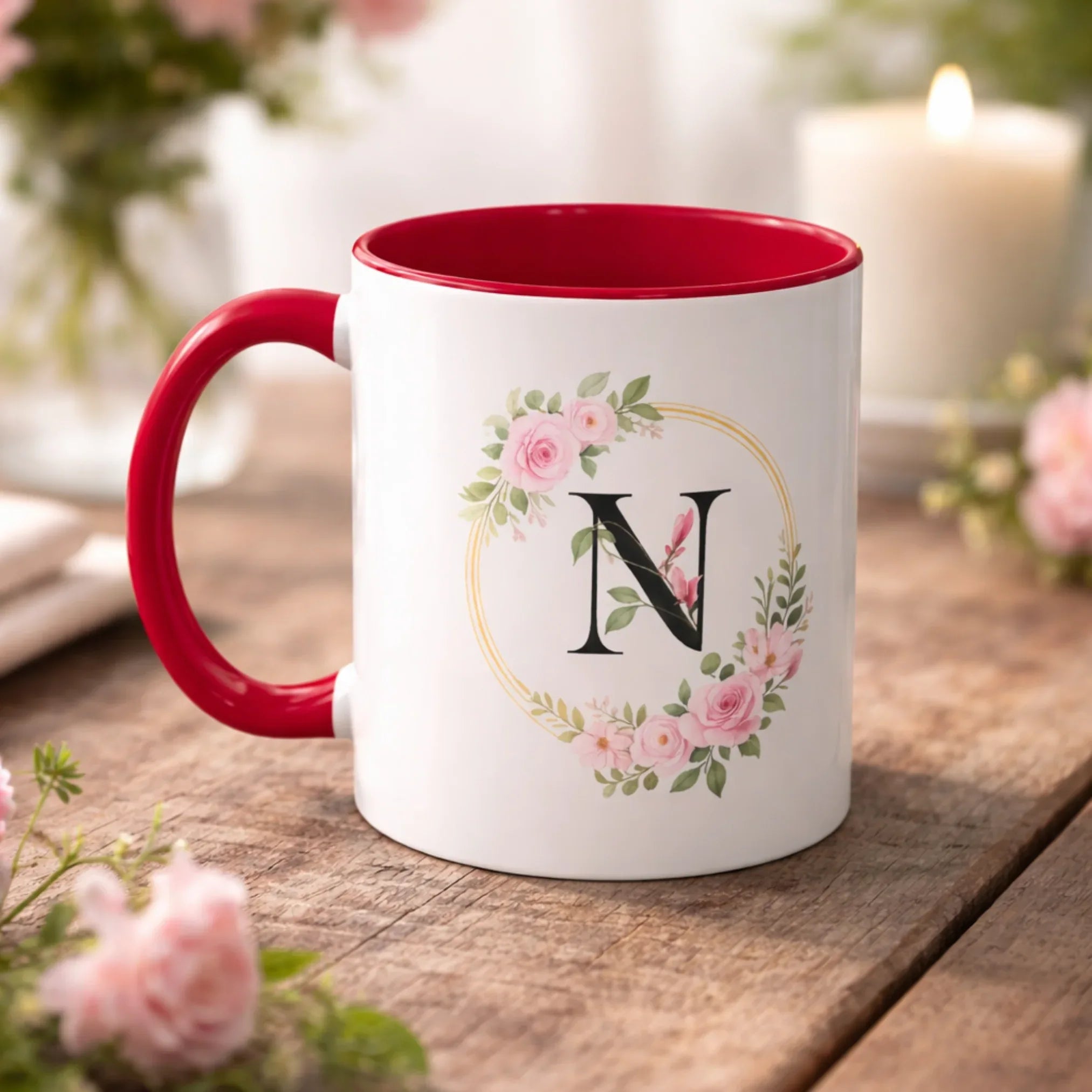 Add a personal touch to your daily tea or coffee with this elegant Inner Color Ceramic Mug, beautifully printed with a floral monogram design featuring the letter “N”. Crafted from premium ceramic and finished with a glossy shine, this mug is designed to elevate everyday moments while making a thoughtful gift for someone special.