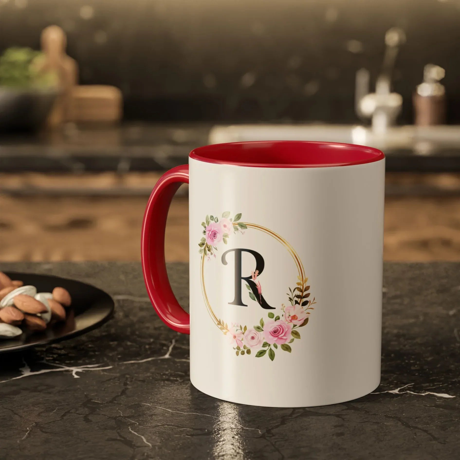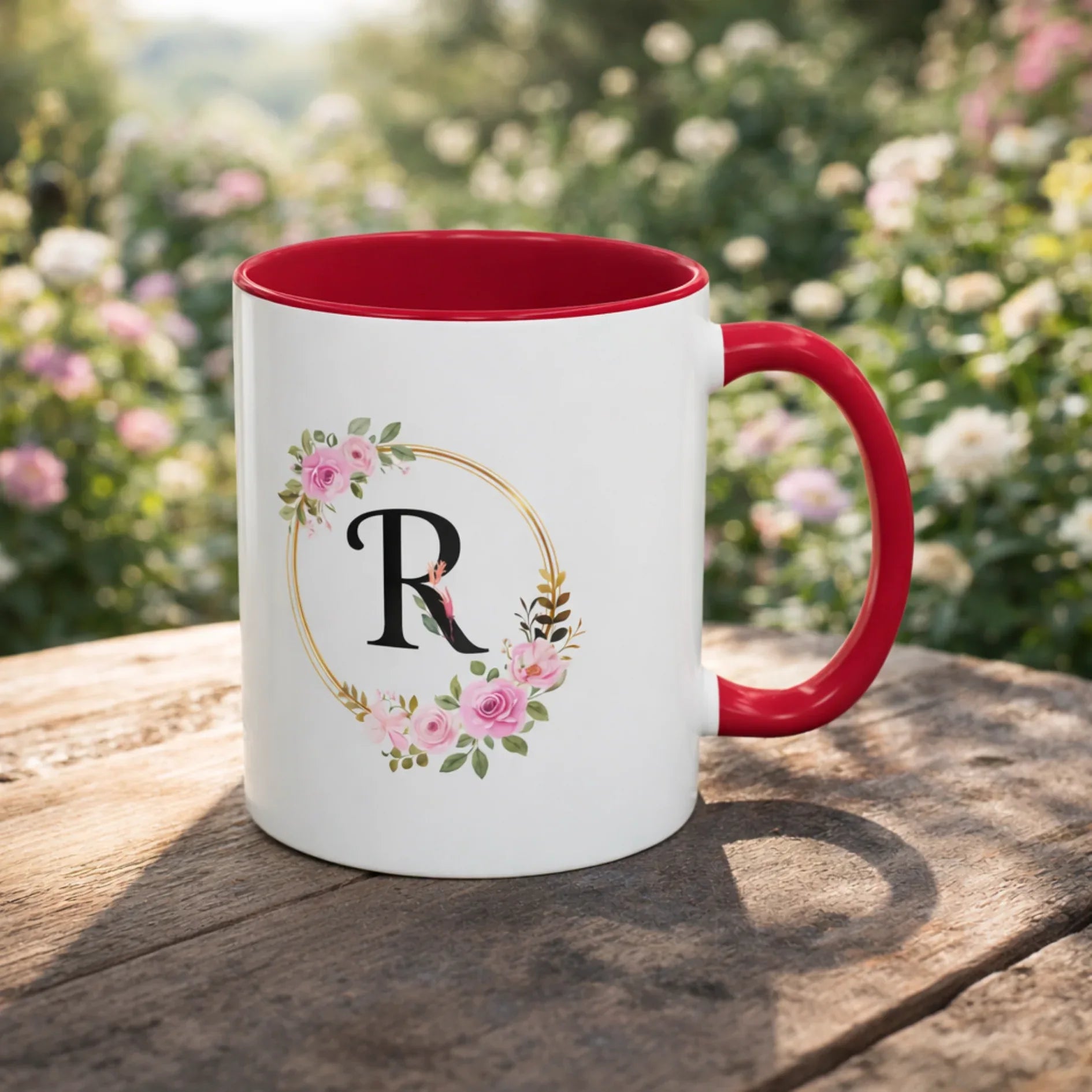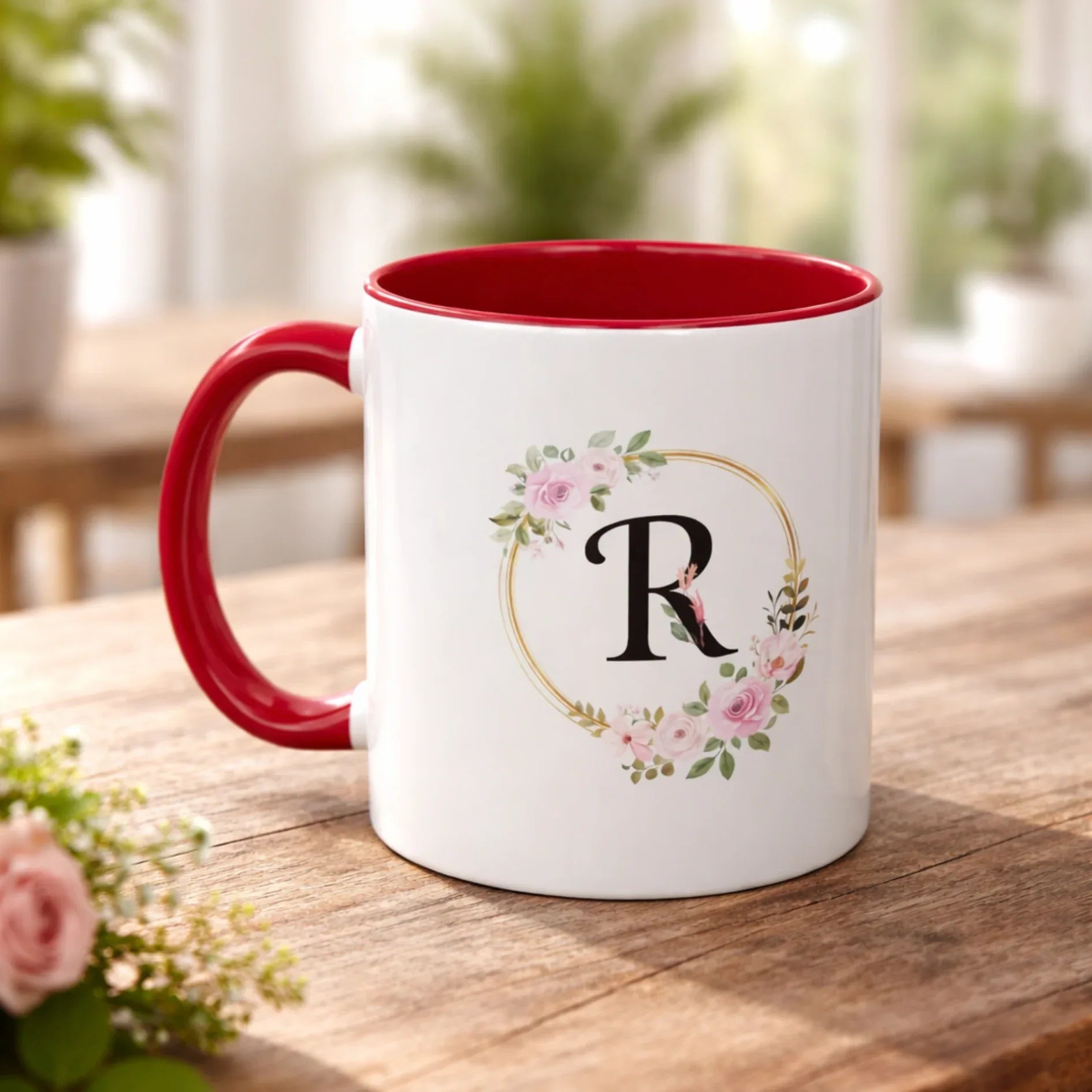 Personalized Inner Color Ceramic Mug with Letter R Print