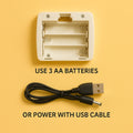 - 🔋 Dual Power Options – Supports both USB cable & 3 AA batteries.